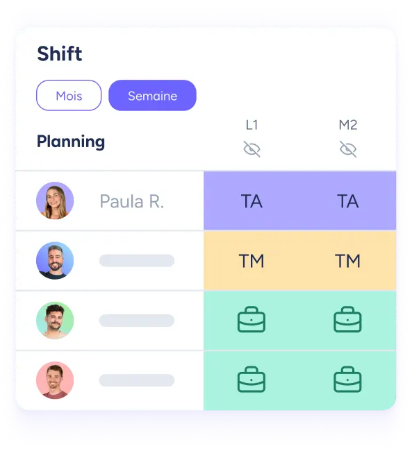 L'application permet de consulter les heures théoriques, travaillées, supplémentaires et complémentaires. Filtrez et regroupez les données du bilan des heures selon différents critères et téléchargez les rapports au format document. Vous pouvez créer des plannings de shifts en tenant compte des jours fériés, des demandes de congés, des absences, etc.