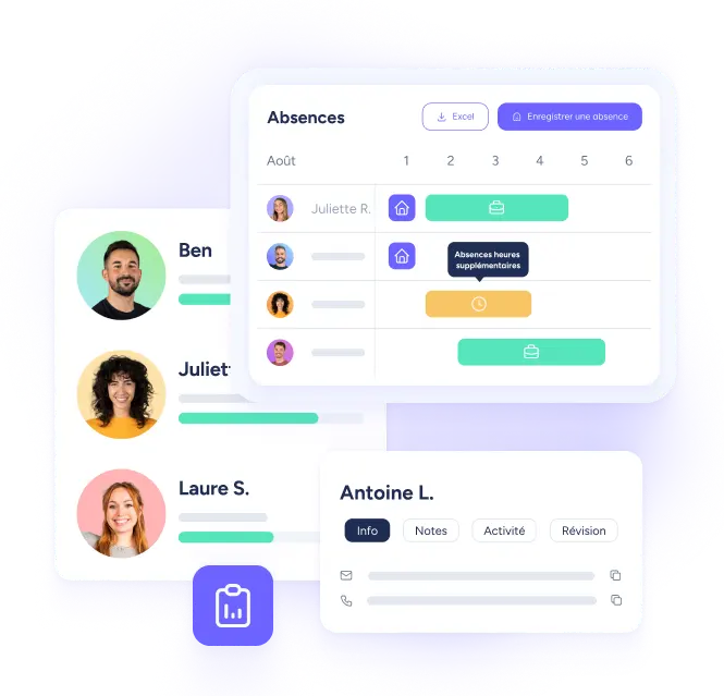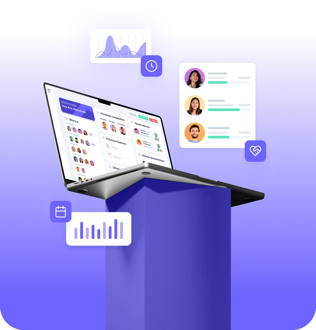 Pointages, demandes de congés, données de ponctualité, évaluations de performance, enquêtes de satisfaction, formations suivies... Avec une base de données constamment mise à jour, vous pouvez anticiper la prise de décision et les tendances, et détecter le potentiel des membres de votre équipe pour introduire des actions qui amélioreront leur bien-être dans l'entreprise et les compétences requises pour leur poste de travail.