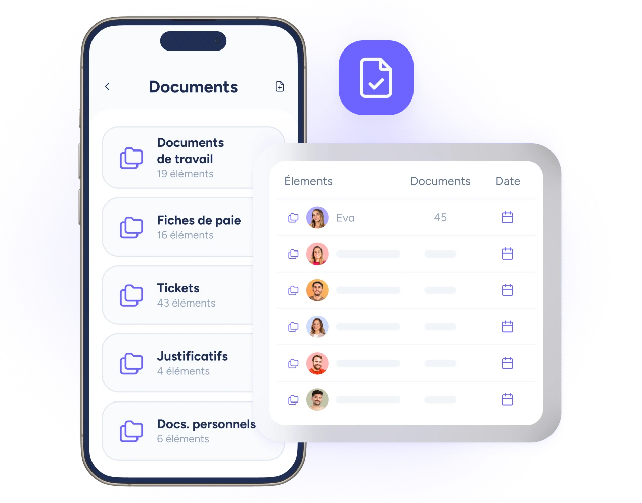 Stockez et gérez tous les documents professionnels de vos employés sur une seule plateforme en ligne sécurisée, avec contrôle d'accès, traçabilité et visibilité totale pour le service des RH.