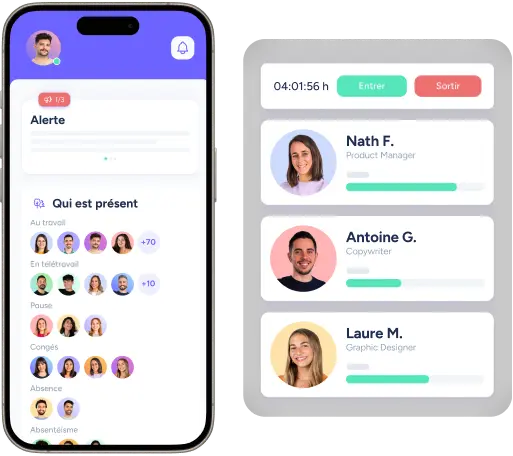 Oubliez Excel et les pointages peu fiables. Avec Sesame HR , vous enregistrez la journée de travail avec des données fiables et accessibles, respectez la loi et offrez à votre équipe un moyen de ficher simple et adapté à ses opérations.